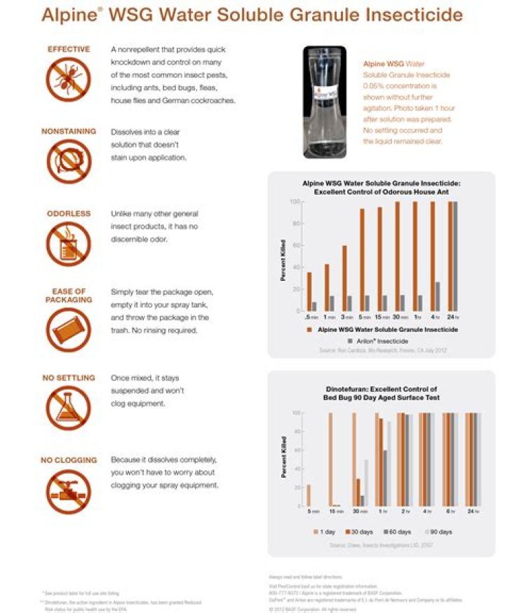 Alpine WSG granular water soluble insecticide has been shown to control some of the most common insect pests, including ants, bed bugs, fleas, house flies and German ■■■■■■■■■■■■ Alpine WSG water-soluble granulated insecticide is also easy.