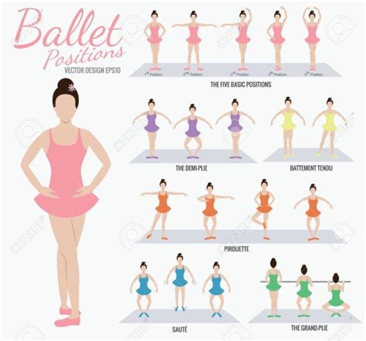The first position requires the dancer to place both feet side by side with each foot pointing outward. The second position is similar, but leaves some space between the legs. Your arms are stretched out to the sides. The third position is also close to the first position, but your front foot is behind the other foot. The fourth position is more difficult because you have to point both feet inward with some distance between them. The fifth position is almost identical to the fourth position, but there is no space between the legs. Raise both arms in the air above you.