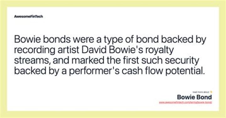 A Bowie bond was a unique type of asset-backed security which used as collateral the royalty streams from current (at the time) and future album sales and live performances by musician David Bowie.