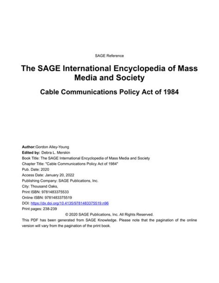 Cable Communications Policy Act (CPPA) Of 1984 Definition: