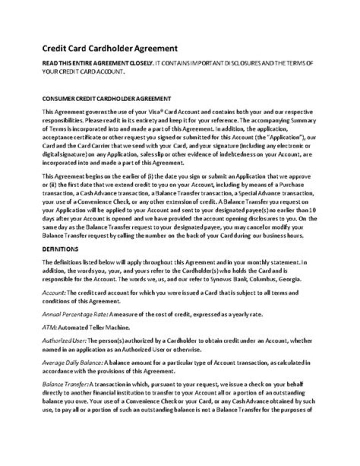 Cardholder agreement,