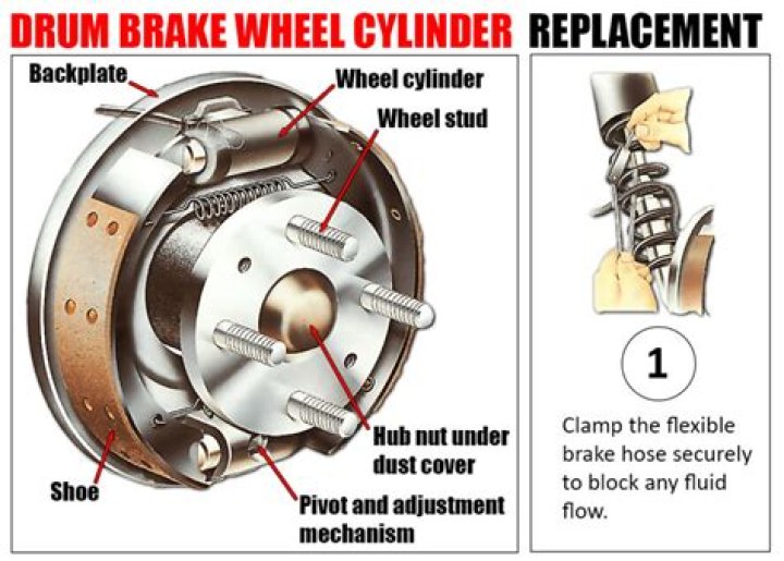 Drum brakes consist of a drum and backing plate, hub or axle, brake shoes, wheel cylinder, wheel bearings and the fasteners necessary to secure these components to the vehicle. The wheel cylinder is connected to the master cylinder by pipes, hoses and valves that direct brake fluid through the system.