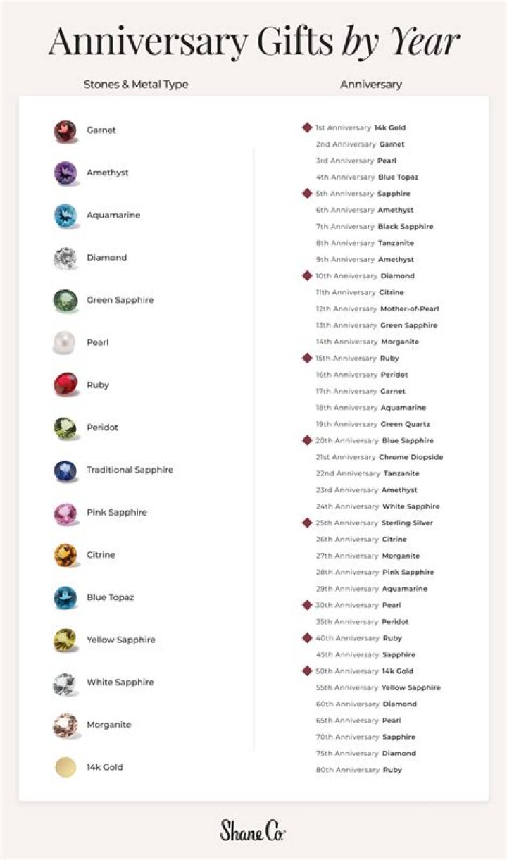 What is the traditional anniversary gift list?
