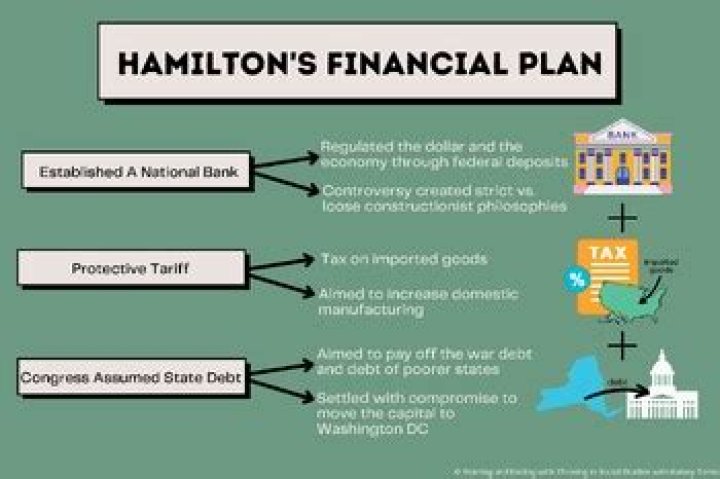 Hamilton's plan includes the creation of a national bank and a national loan to boost the federal government's power and credibility. Instead of allowing any state to repay its debts, he thought that all these debts should be taken together in a state that would be supported by the federal government.