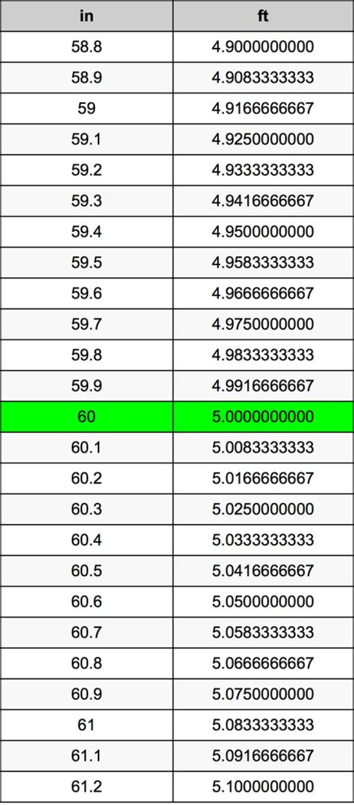 How Many Feet Is 60 In