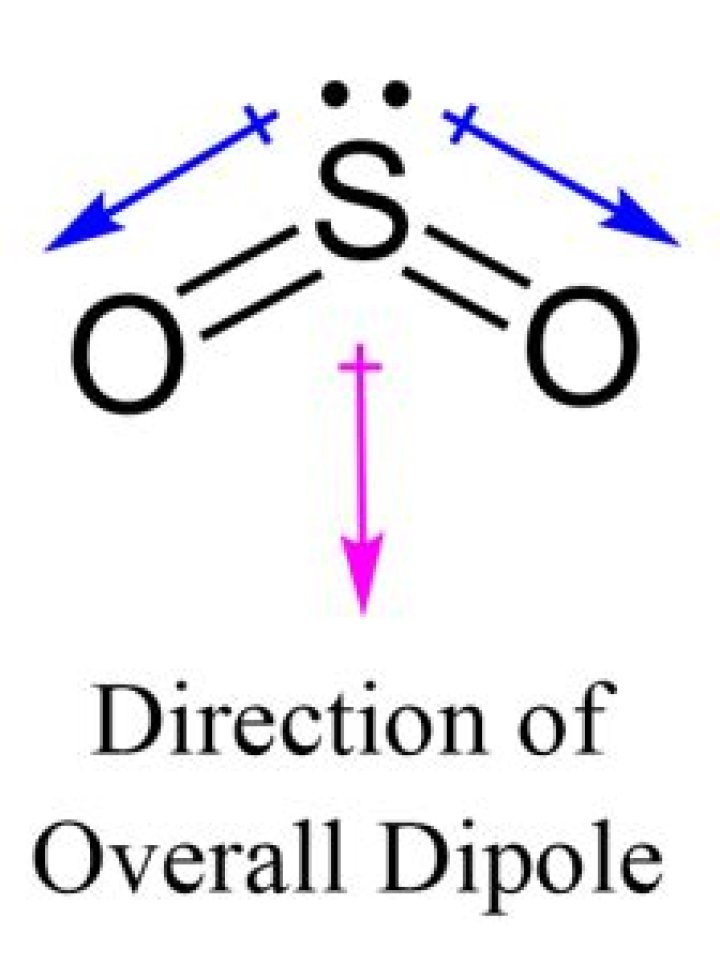 Sulfur dioxide is an angled molecule with a difference in electronegativity, with sulfur having a weaker pull than oxygen. As a result, a persistent dipole moment exists. The dipole moment is caused by an imbalance in the distribution of positive and negative charges.