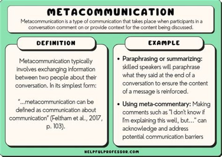 Benefits of Meta-Communication Introduces the recipient to the next communication so that they are prepared with the purpose, intent and structure of what they want to say. Help a receiver match your wavelength or frequency. Relax on the phone and help him pay attention.