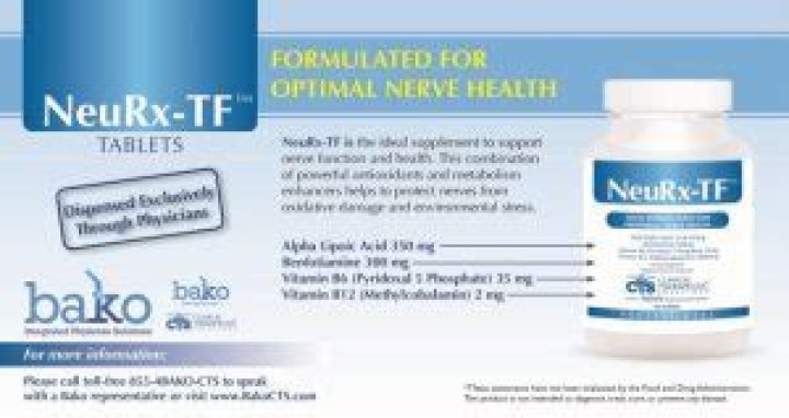 NeuRxTF TABLETS consists of a total composition of alpha lipoic acid (350 mg), benfotamine (300 mg), vitamin B6 (35 mg) and IL B12 (2 mg).