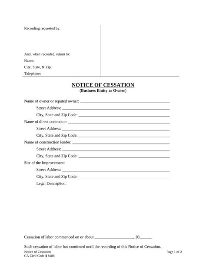 Notice of cessation,