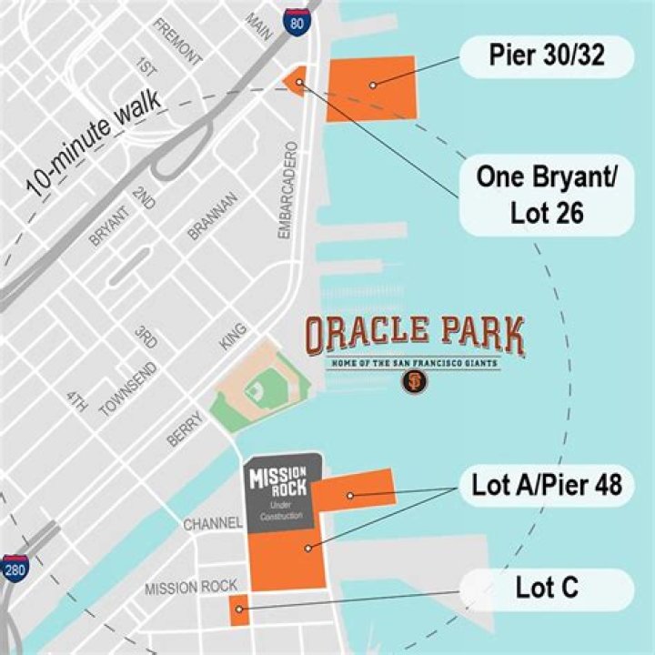 The best way to get to Oracle Park is to plan ahead and consider all available transportation options. Operated by Imperial Parking, Oracle Park offers parking on lots A, C, Pier 48 and Pier 30 and is sold on a first come, first served basis. Only Lot A is allowed and the rest is cash only. See the park map.