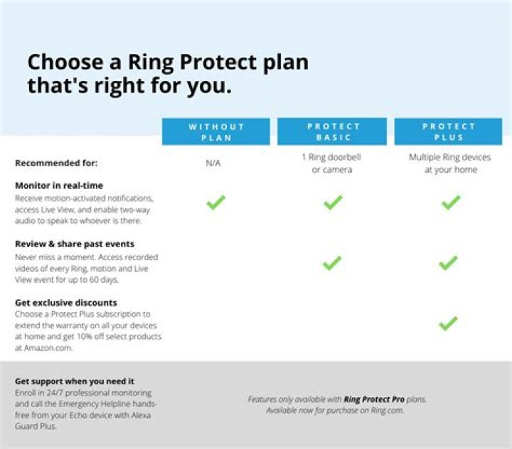 Ring Protect Subscriptions With Ring Protect Plus you can record, save and share any video recorded with an unlimited number of calling devices. Protect Plus members also receive professional 24/7 monitoring with ringtones, exclusive discounts and an extended warranty.