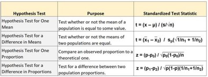 The hypothesis test uses standardized test statistics. General formula: Standardized test statistic: (statistical parameter) / (statistical standard deviation). The formula itself doesn't really matter unless you also know the three basic equations for Zscores and Tscores.
