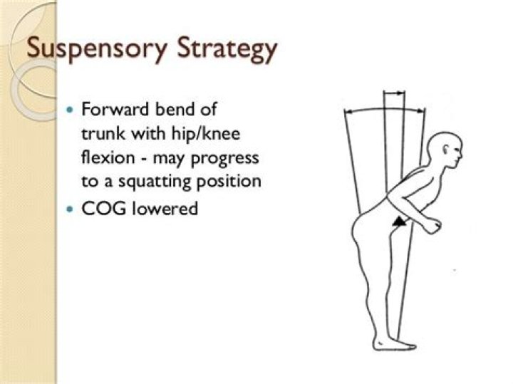 | The suspensive strategy consists of bending the knees while standing or walking to maintain a stable position during an ailment. Bending the knees generally lowers the center of gravity to get closer to the BOS, which improves postural stability.