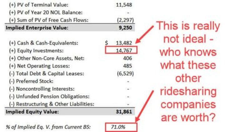 While the market capitalization of a publicly traded company like Uber Technologies is equal to the price of its shares multiplied by the total number of shares outstanding, a different approach is required to calculate the value of a publicly traded company like Uber Technologies.