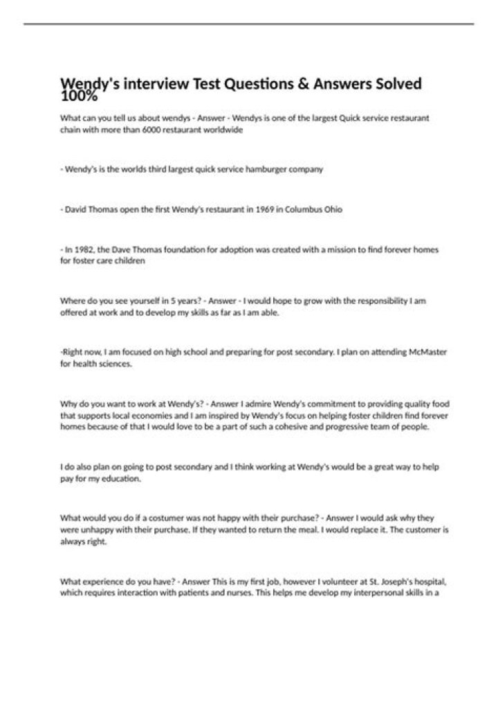 What are Wendy's interview questions? 3